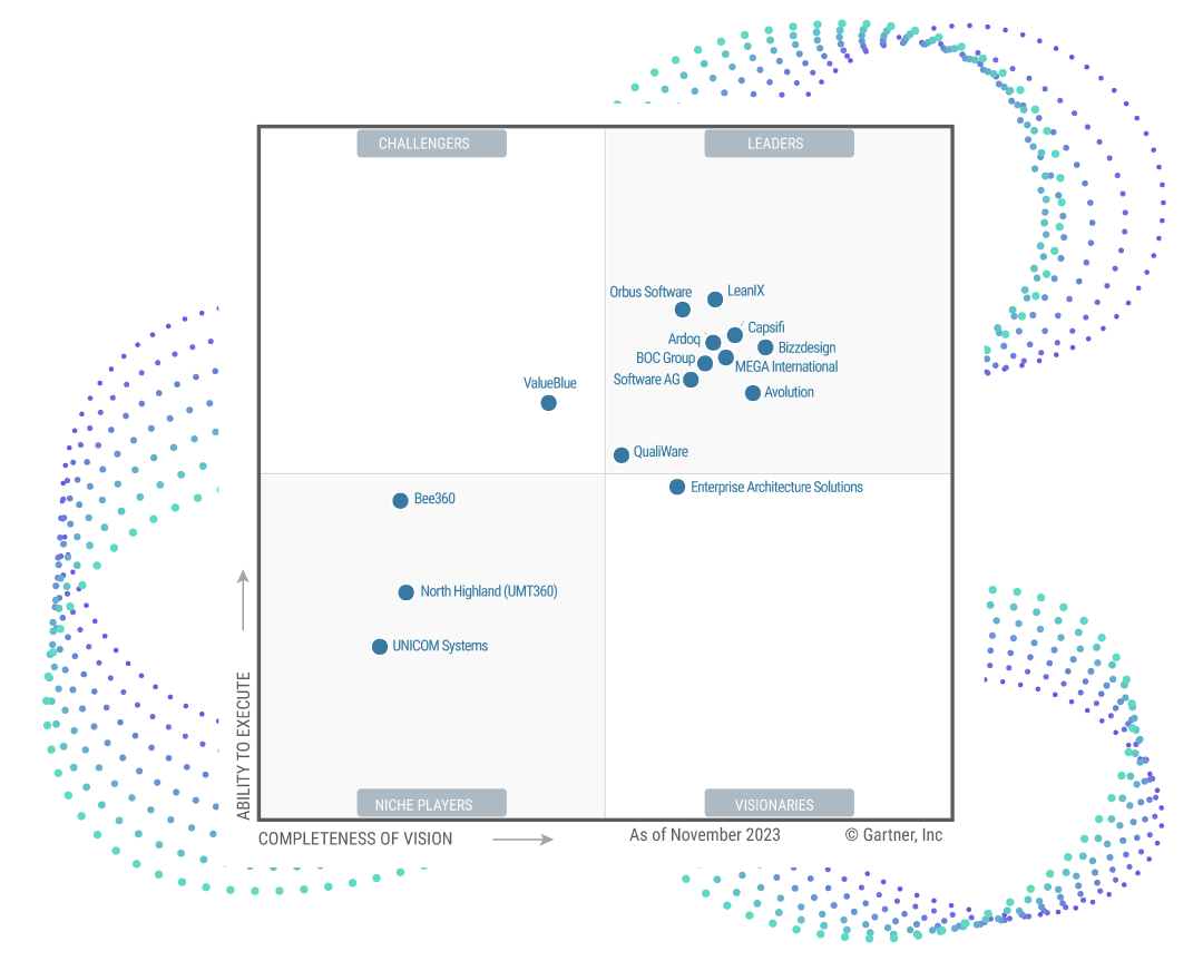 Gartner defines the enterprise architecture (EA) market as providing “tools that allow organizations to examine both the need for, and the impact of, change” and “a means to model the business and IT aspects of the enterprise in support of business outcome delivery”. To be recognized in the Magic Quadrant™, participants must meet certain criteria across performance, market momentum, and EA tools market focus.