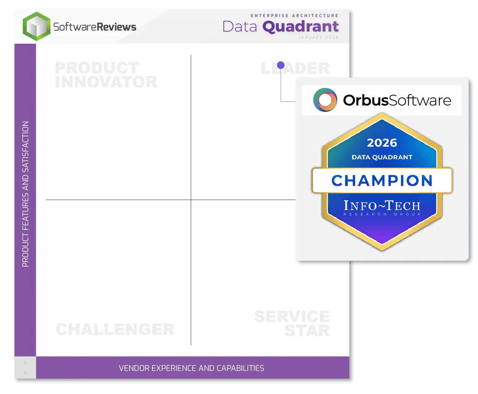 We're thrilled to announce that OrbusInfinity has been named 'Champion’ in the 2026 Enterprise Architecture Data Quadrant by SoftwareReviews.