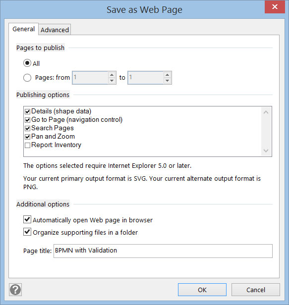 The Publishing Options for a web page may include the option of including Visio reports as an HTML table.