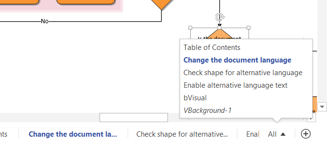 The Drawing Explorer window can also be used to change the active page, as well as selecting a shape. In the above screenshot, I can see that there are a lot of Dynamic Connector shapes, and all but one (the first one) has a number suffix. I can also see three Gateway shapes, and I can rename them by using the Shape Name dialog or by selecting the shape name in the Drawing Explorer window, then pressing F2 to go into Text Edit mode. I can then type in a new name which means more to me when searching for it at a later time.