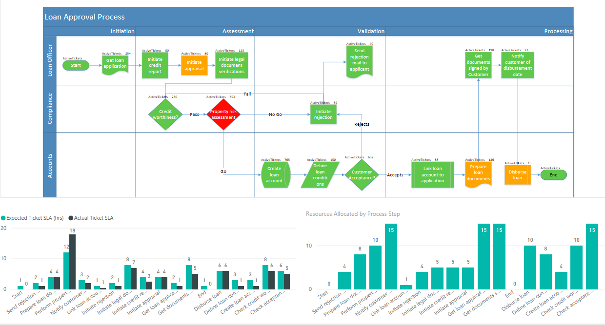 - Keep color variations in the Visio page down to the minimum so that Power BI highlights and color fills stand out.