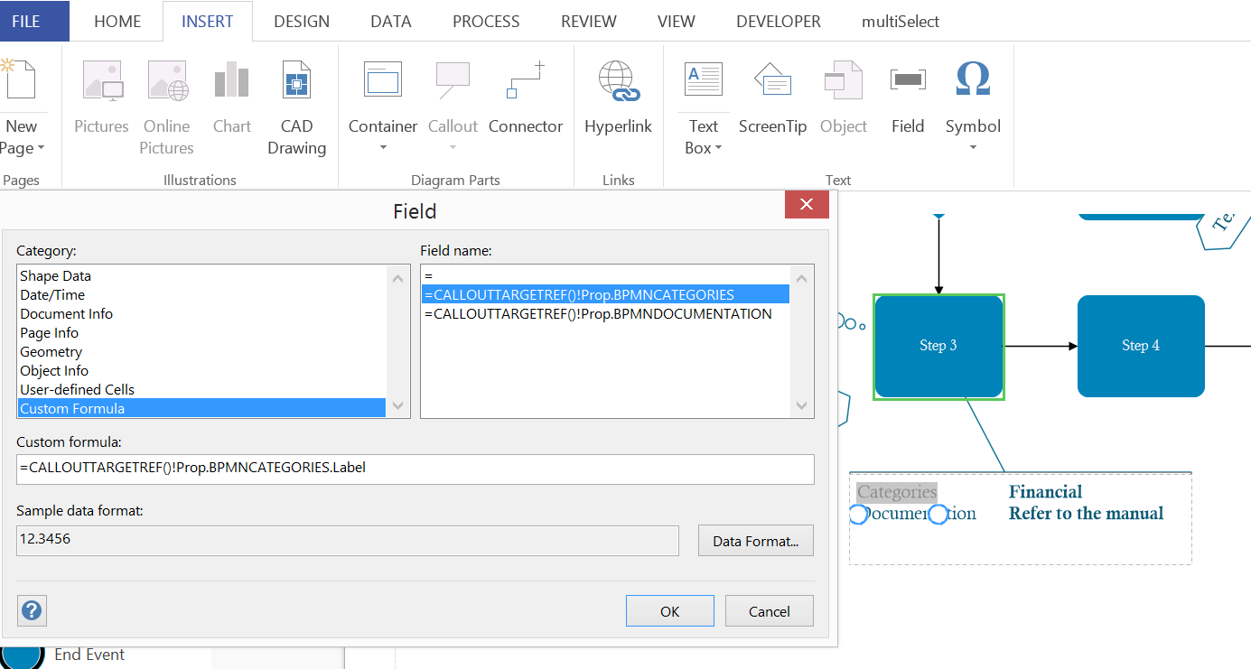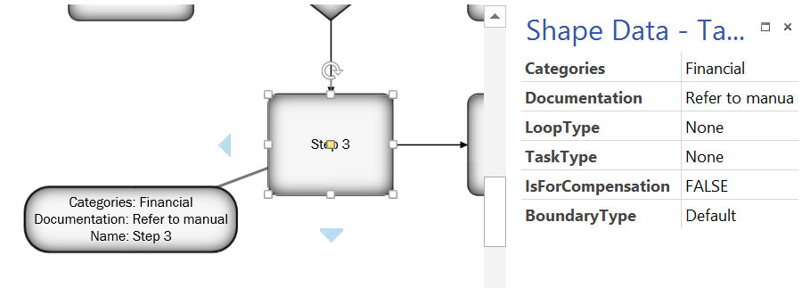 Note that the Configure Callout dialog lists all data rows, including the hidden ones. In fact, there is a hidden Name shape data row in these BPMN shapes.