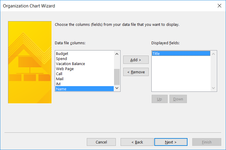 Then, I added just the Shape Data fields that are already on the Org Chart shapes.