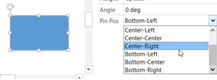 The Pin Pos is the point about which the shape or selection of shapes will rotate. This is pre-set at Center-Center for most shapes, but it can be anywhere, and the Size and Position window does provide you with some of the most common positions.