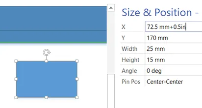 Also, you can use the Size and Position window, which is available from the VIEW / Show / Task Panes drop-down menu, in order to either enter in a new X or Y figure, or to enter a formula, as in the following screenshot.