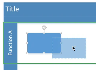 It may seem strange to start with copying, but I am aware that some Visio users are unaware of the advantages of using duplicate rather than copy and paste. Copy (CTRL+C) will put the selected shapes into the general purpose Windows clipboard, thus making them available to other applications outside of Visio, and requiring you to use Paste (CTRL+V) to drop copies of the selected shapes. Duplicate can be used to keep the selected shapes completely within the Visio application, making it more efficient, thus avoiding possible corruption from any other application. You can duplicate the selected shapes with the CTRL+D keys, or by holding down the CTRL key whilst you click and drag the shapes, as in the following screenshot. Notice that the cursor has changed to show an arrow and a plus sign.