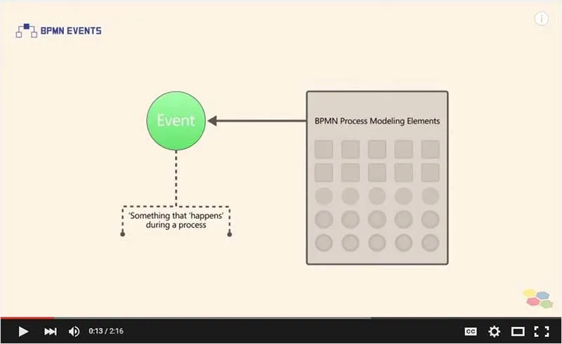 An event is a common BPMN process modeling element, which represents something that “happens” during the course of a process. Examples of process events are: “a telephone call”, “at three o’clock”, “a message has been sent”, “a message has been received”, “all tasks are completed”, “an error occurred.”